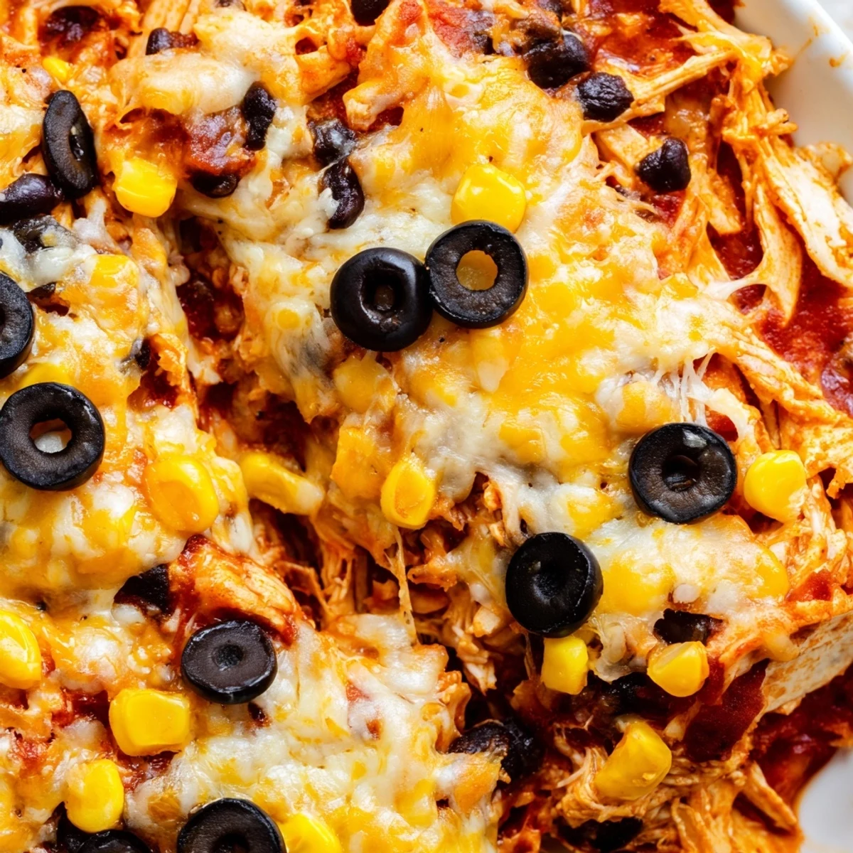 This satisfying Tex-Mex bake comes together with just 20 minutes of prep. Shredded chicken mingles with black beans, corn, and aromatic spices in rich enchilada sauce, layered between soft tortillas and blanketed in melted Mexican cheese blend. The result is a bubbling, golden casserole that serves six hungry people.
