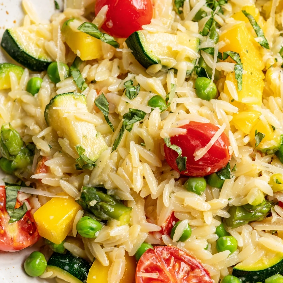 This dish tastes best served immediately while the vegetables retain their crisp texture. If meal prepping, slightly undercook the orzo and vegetables. Reheat gently with a splash of water or olive oil to restore creaminess. Add fresh herbs and Parmesan just before serving for the brightest flavor.