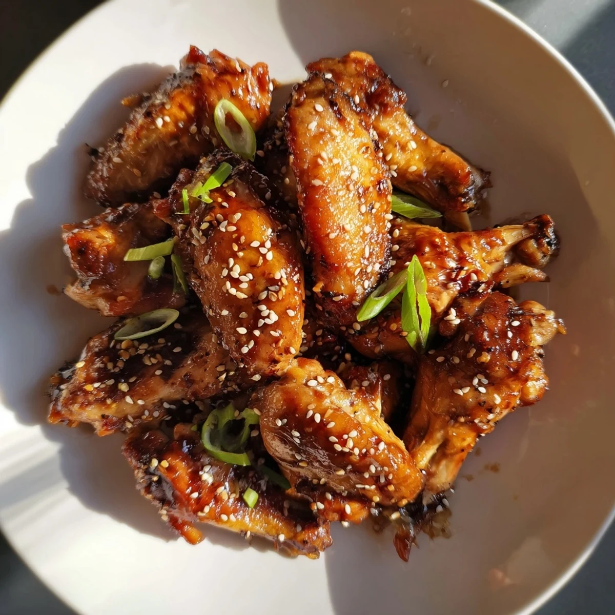 - Pile the sticky wings onto a platter, scatter sesame seeds and sliced green onions across the top, and serve immediately while the contrast between crunch and sauce is at its peak.